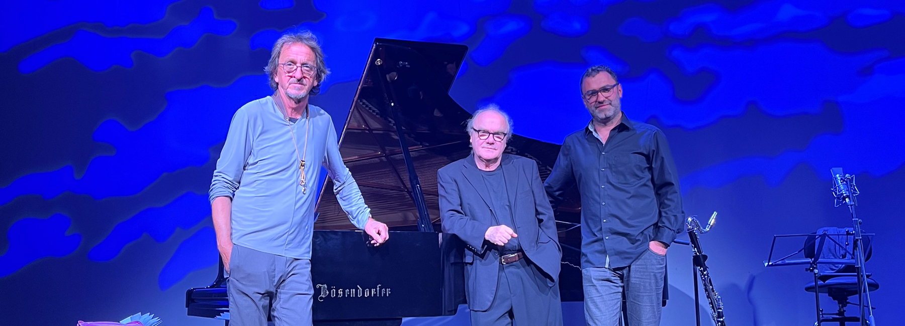 Jazz hat immer mit Improvisation zu tun, aber diese drei Musiker*innen haben die Improvisationskunst noch einmal in eine andere Dimension gehoben. Aktion und Reaktion, einer beginnt, der nächste steigt ein, geht mit oder setzt bewusst einen Kontrapunkt dagegen. Und mit dem dritten dreht sich das Stück vielleicht in eine ganz andere ungeplante Richtung, je nach Stimmung, momentaner Befindlichkeit, oder der Ausstrahlung des Publikums. Gleichzeitig ist die Musik aber nicht strukturlos und chaotisch, sondern von absolutem Formgefühl getragen. Sie lebt von immenser Spannung, Sensibilität, und geht vollkommen im Moment auf – darum heißt das Konzert auch „Into the Now“. Zum 7. Mal bereits (!) war der renommierte Saxofonist Heinrich von Kalnein zu Gast bei den Jazzfreunden, jedes Mal mit einem komplett anderen Projekt. Kongeniale Improvisationspartner bei diesem Konzert waren die Bassistin Gina Schwarz aus Niederösterreich und der spanische Drummer Ramon Lopez, ein Vorgeschmack auf den heuer folgenden Spanien-Schwerpunkt der Jazzfreunde.