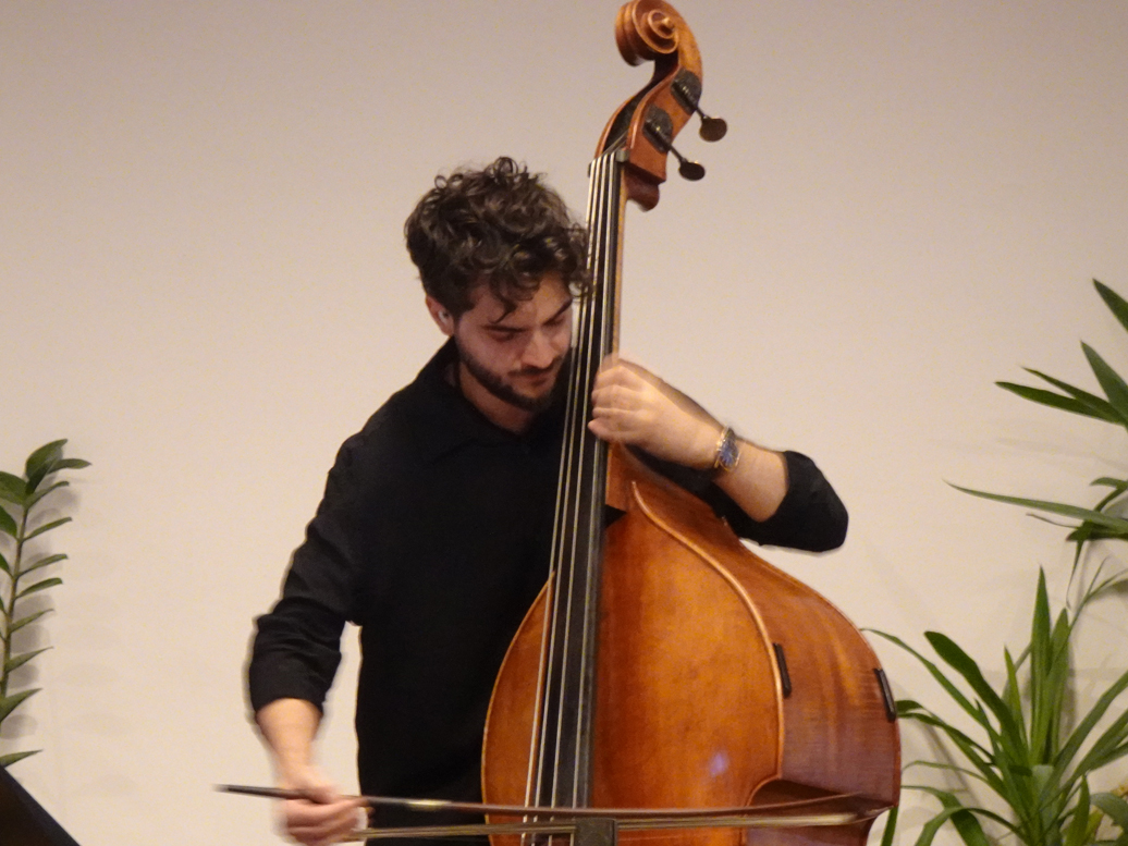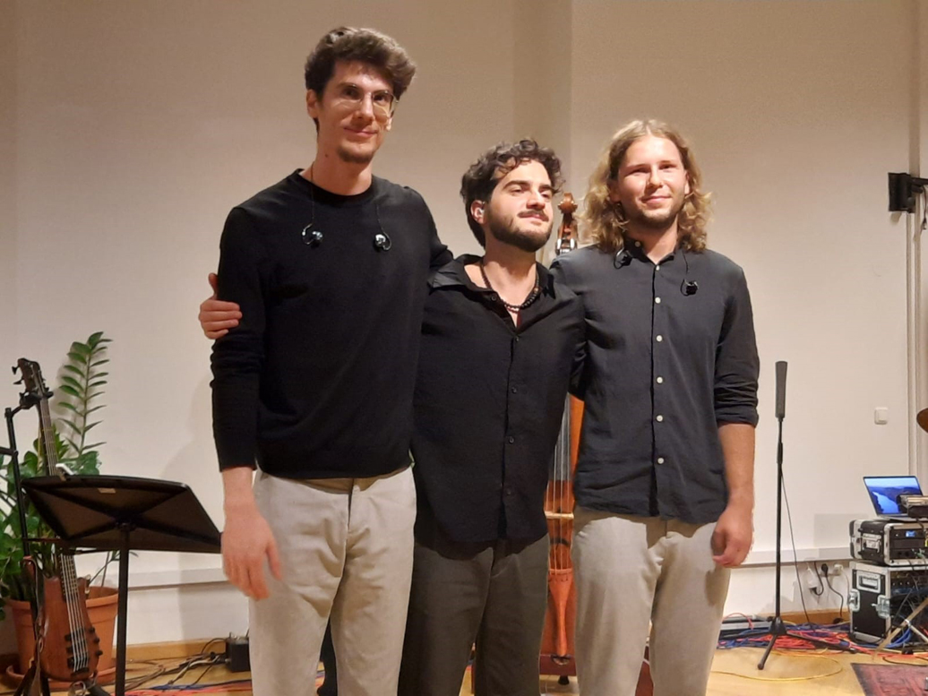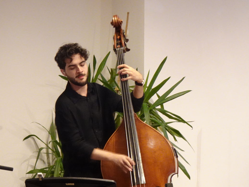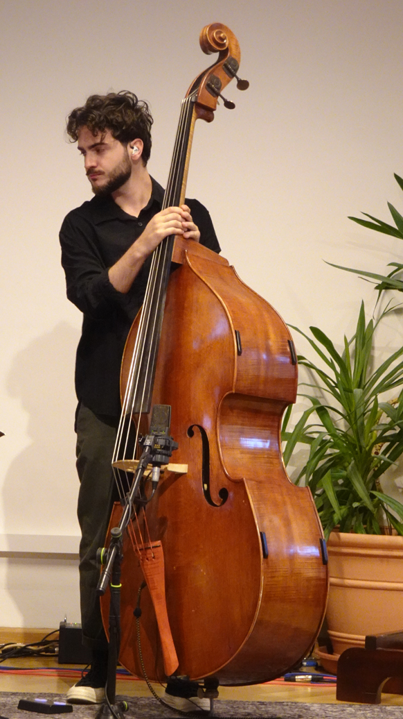 Amphitrio – die drei jungen Rumänen Andrei Petrache an den Tasten, Mike Alex am Bass und Philip Goron, drums klangen nicht wie ein Trio sondern mindestens wie ein Sextett. Nur drei Leute und so eine unglaublich abwechslungsreiche Performance! Die Stücke klangen stilistisch ganz unterschiedlich, durchgecheckt und ausgetüftelt bis ins Detail, von besinnlicher Ballade bis zu Heavy Rock. Andrei Petrache bediente neben dem Flügel auch ein Keyboard und entlockte ihm schräge Sounds, die jedem Stück einen unverwechselbaren Charakter verliehen. Die meisten Kompositionen stammten von Andrei Petrache, er ließ sich auch von Bela Bartok und rumänischen Volksliedern inspirieren – alle mit ungeraden und ungewohnten Taktarten. Die drei Musiker konnten ihre Virtuosität und Kreativität voll ausspielen.