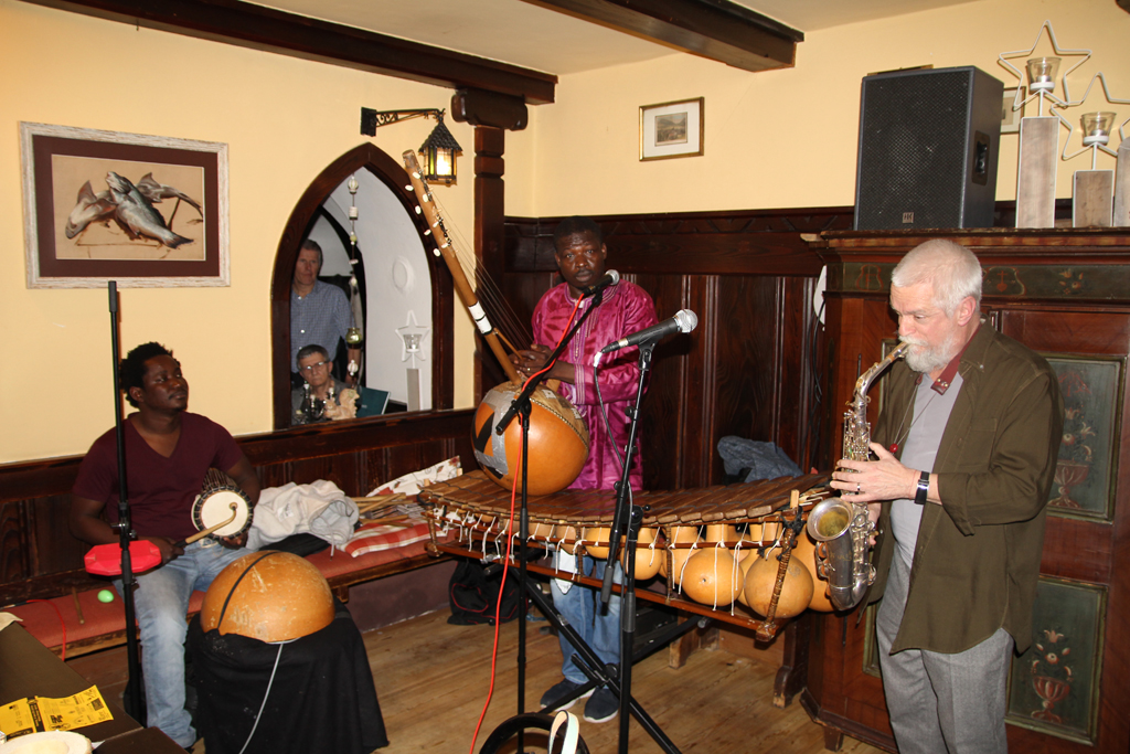 Ursprünglich als Duo-Konzert angekündigt, brachten Diabaté (Balafon. Ngoni) und Puschnig (Saxofon. Flöte) Überraschungsgast Koita (Perkussions-Instrumente) mit. Das Publikum in der sehr vollen Attwenger-Stube erlebte einen Abend, der wie ein stimmiges musikalisches Gespräch zwischen zwei Kontinenten anmutete - angenehmer Jazz-Sound mit Weltmusik-Touch. Die räumlich enge Location war für Wolfgang Puschnig "ungewöhnlich...so wie Hausmusik - super, oder?"
