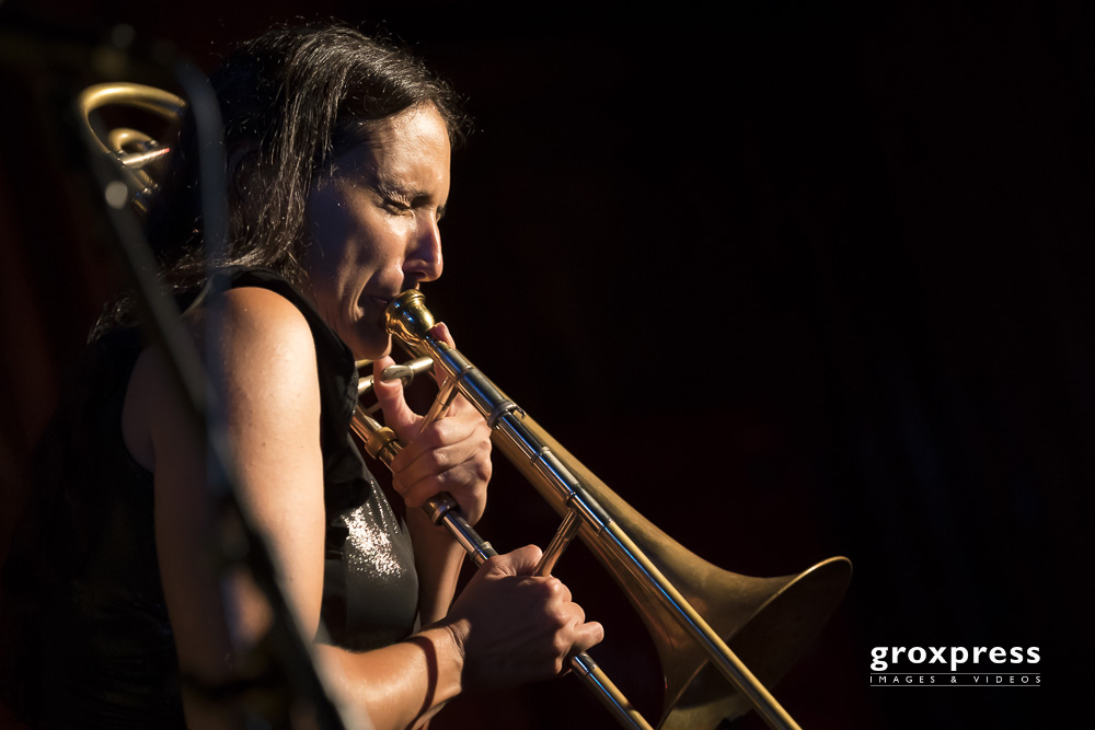 An diesem Abend zeigte Reut Regev wie „frau“ mit internationalem Touch an den Jazz herangeht. Natürlich ist der musikalische Fundus von Regev aufgrund ihrer internationalen Vernetzungen und ihrer Geschichte nicht enden wollend. Sie gibt ganz voller Selbstvertrauen „den Ton vor“ – die Begleiter Drummer und Ehemann Igal Foni und „Ehrengast“, der Austro – Amerikaner Jon Sass an der Tuba waren solide Unterstützer der Posaunenbemühungen von Reut Regev.
