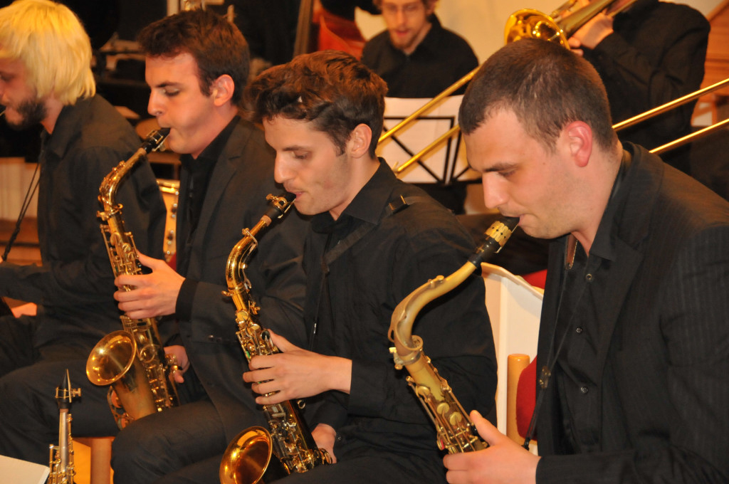Nach der Pause begann ein neues und ganz anderes Spielgeschehen. Frischer Wind kam schon fast „orkanartig“ auf in der LMS. Die jungen Leute des kons.wien.jazzorchestra haben ihre Lektionen bei „Rektor“ und Bandleader Roman Schwaller mehr als beherzigt und vor allem mehr als frech umgesetzt.
