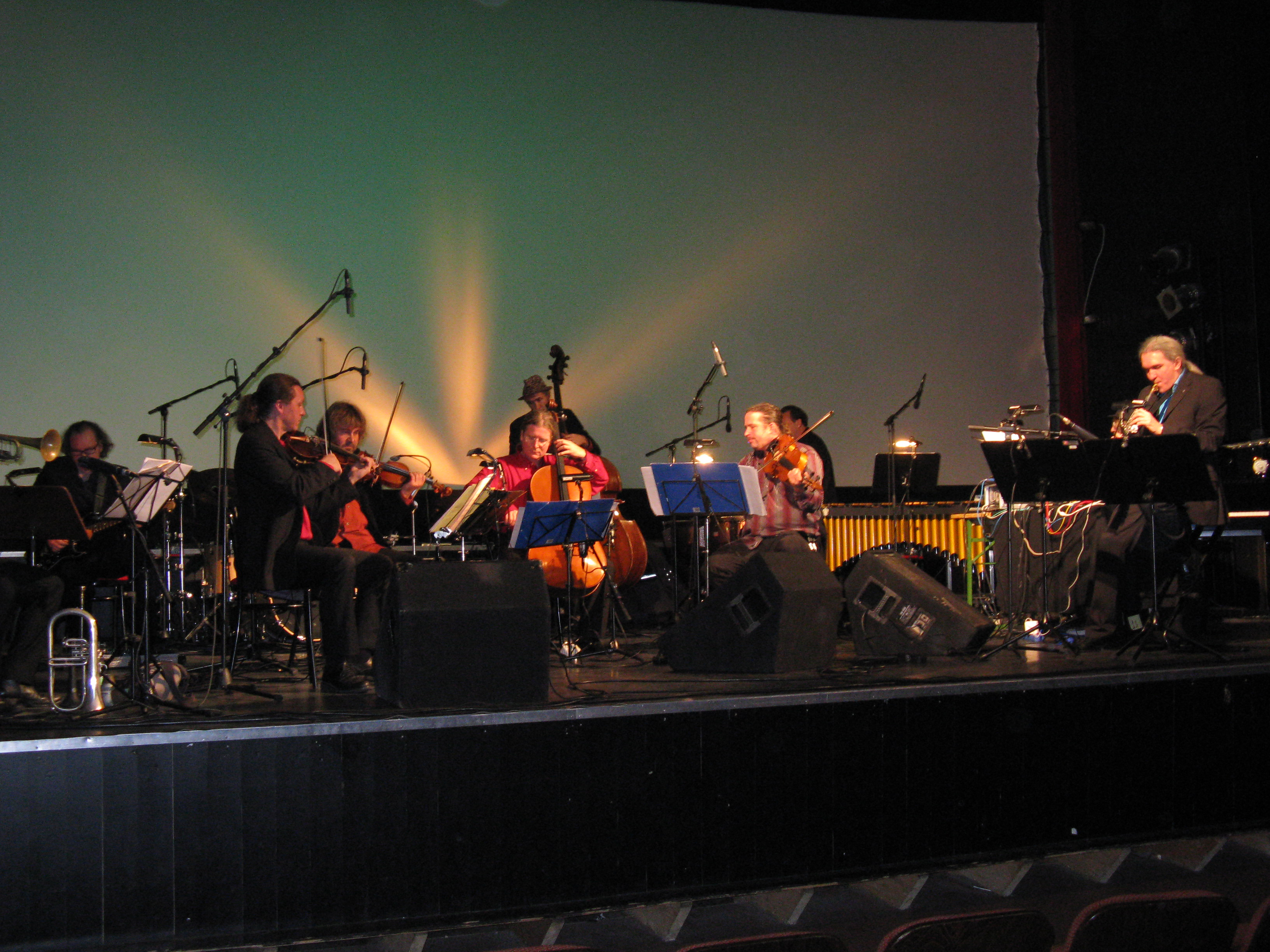 Musikalisch tat es dies auf jeden Fall: ;eister Bruckner groovte, dann und wann zirpte der Synthesizer, die Stromgitarre heulte auf, die Dynamik wechselte mitunter rasch von zart und leise zu groß und wuchtig, die Musiker waren sichtilich unangespannt, auch die Hoch-Konzentration des musikalischen Leiters Thomas Mandel schien nicht verzwickt. Zu Beginn bat er das Publikum, entgegen der teils strikten beifallsbekundungs-Gepflogenheiten in der Klassik, je nach Lust und Laune - auch zwischen den teilen der Sätze oder nach Soli - Beifall oder Missfallen zu bekunden, was dem Abend ebenso gut tat. Der Publikumszuspruch war angesichts einer Reihe von gleichzeitig stattfindenden "Konkurenzveranstaltungen" zufriedenstellend.
