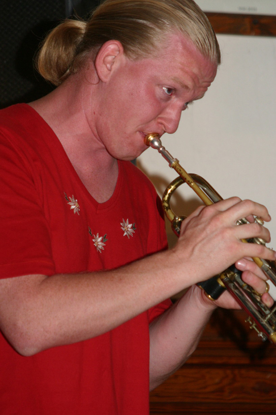 Trompeter Lorenz Raab und seine ":xy band" bestritt in der PKS-Villa Rothstein das letzte jazzfreunde-Konzert vor der Sommerpause