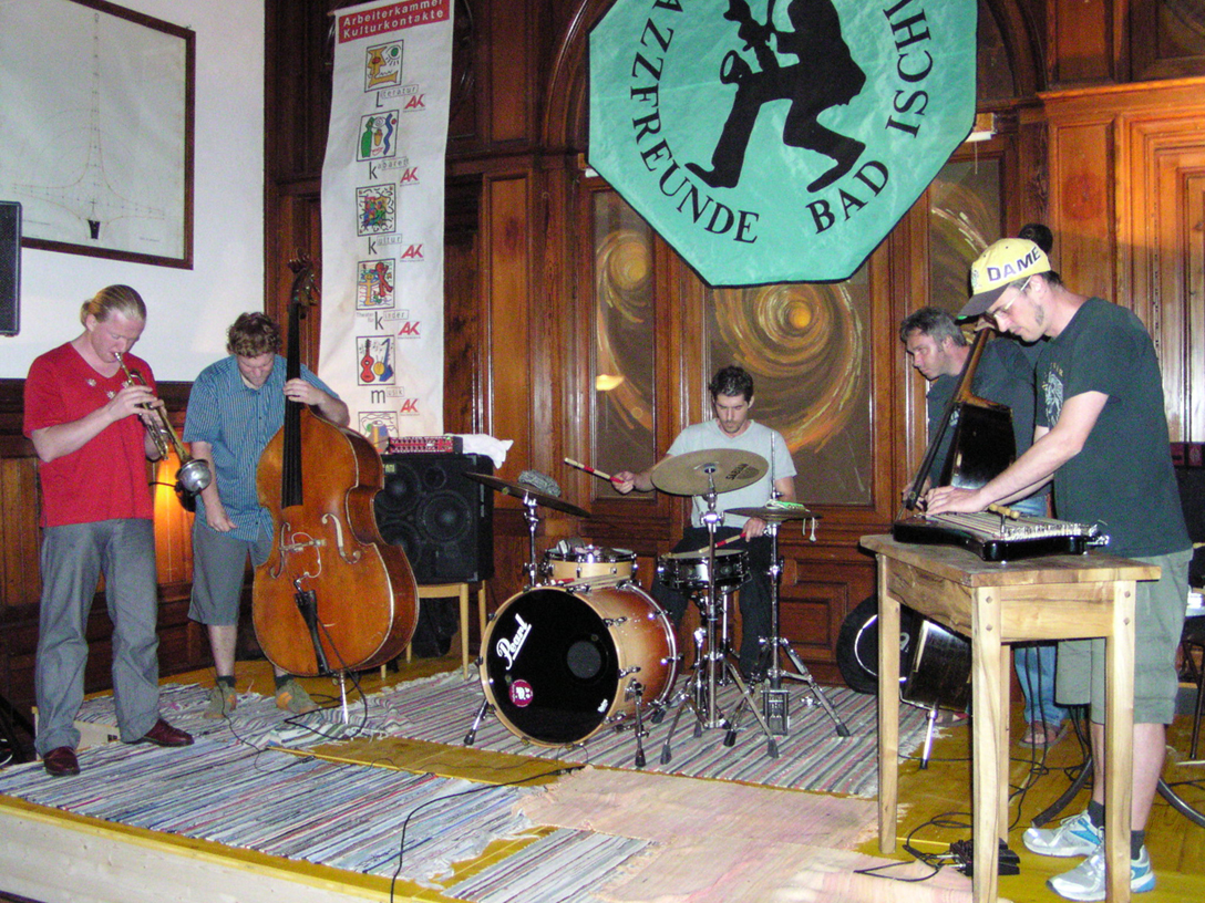 Da haben die Jazzfreunde doch noch ein Highlight des Jazzjahres serviert. Die Band um Lorenz Raab an der Trompete und Christoph Dienz an der Zither (!) begeistert beim Konzert der Ischler Jazzfreunde in der PKS Villa das Publikum. Die elektronisch aufgepeppelte Trompete von Raab erinnert faszinierend an den Giganten Miles Davis – das ganze Band-Sound-Konzept gräbt in den Erinnerungen an die JazzRock Frühmeisterleistungen des genannten Miles oder an die ganz großen Fusion Werke von Joe Zawinul bzw. dem Mahavishnu Orchestra um John McLaughlin. Scheut sich in Person des „rotzfrechen“ Dienz an der elektronisch unterstützten Zither aber keineswegs vor schwer innovativen Ansätzen des 2. Jazzjahrhunderts. Was dieser junge Meistermusiker mit Hilfe von diversen Electronica aus der Zither herausholt pendelt soundmäßig zwischen e-funk Gitarrenbrettern und spacigen Synthesizerspielereien der 80 Jahre.