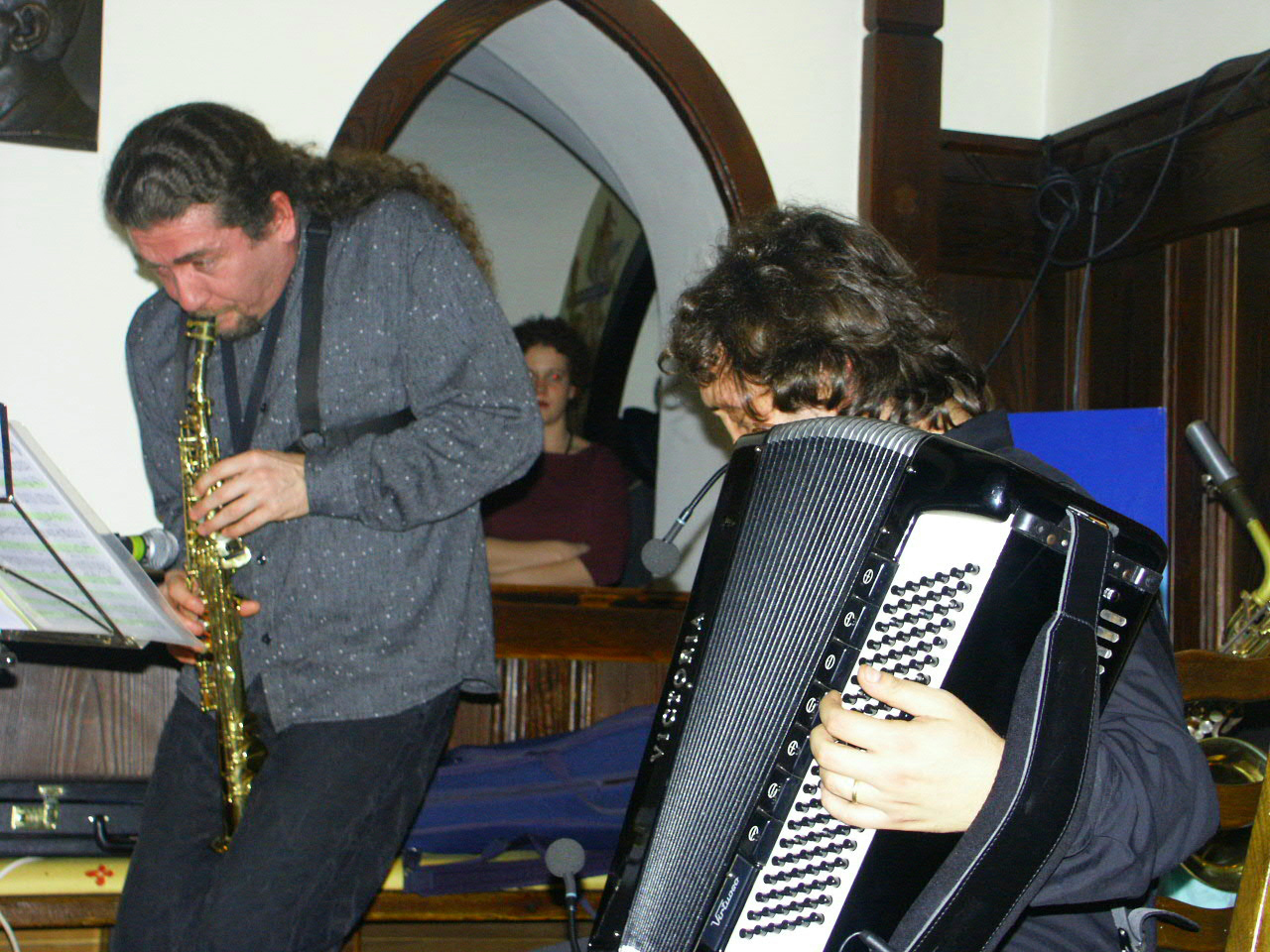 Luciano Biondini und Javier Girotto bringen bei ihrem Auftritt im Ischler Weinhaus Attwenger die Ohren zum "Glühen" und den Schnee zum Schmelzen.