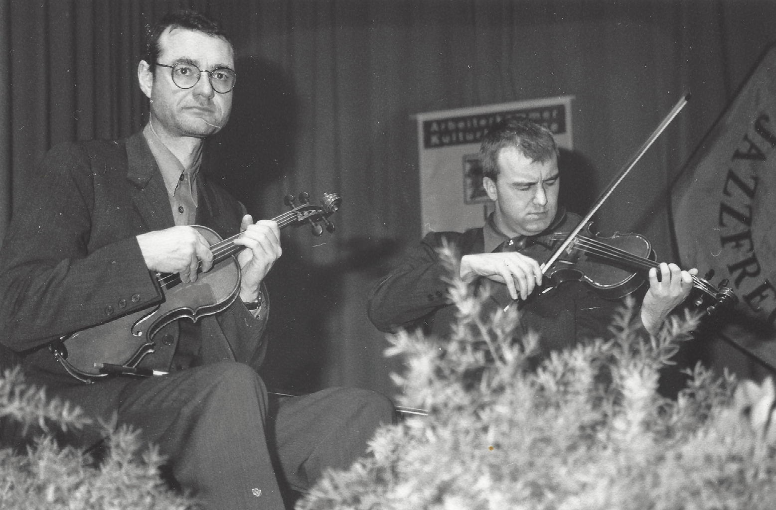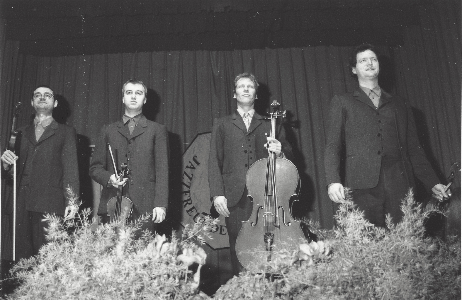 Trotz der stilistischen Bandbreite des "Modern Strin Quartetts" wirkte vor allem die erste Hälfte stets ein klein wenig akademisch, was durch die Abspielung schon x-mal gehörter Standards nicht eben besser wurde. Die Publikumsbegeisterung hielt sich dann auch in Grenzen, was daran gelegen haben mag, daß das Gros der Zuhörer erst vor kurzem Herrn Balanescu mit seiner truppe nicht unweit von hier erleben durfte. Im direkten Vergleich zugute zu halten ist den Münchnern auf alle Fälle. daß sie ohne elektrische Verstäkung und ohne Zuspielungen vom Band auskommen, sonder technische Puristen bleiben und ganz ohne Blattvorlagen auskommen. Die Perkussionseffekte wurden mit dem Bogen oder den Fingern erzeugt, der für Jazzbaladen typische Klang von Schlagzeugbesen entsprang einem über die Saiten gelegten Stück Papier.