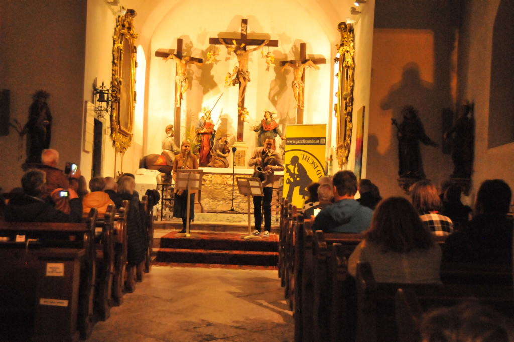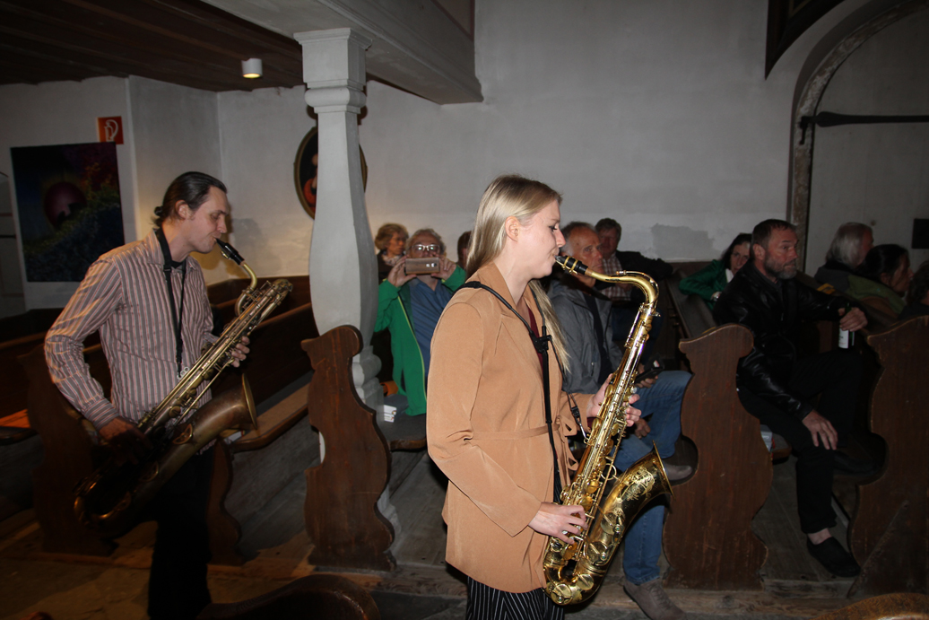 Die jazzfreunde luden zu einem Konzert des finnischen Duos Adele Sauros und Joakim Berghäll in die Ischler Kalvarienbergkirche, wo die beiden in einen musikalischen Dialog zweier - an einer Stelle sogar dreier - Saxophone traten.