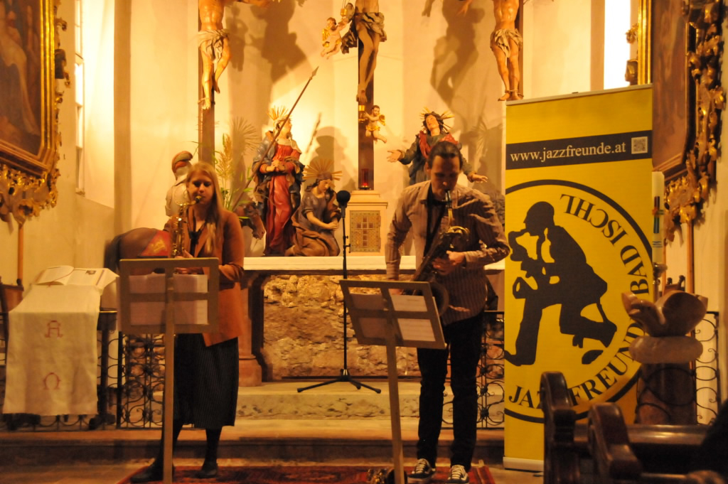 Sauros/Berghäll verzaubern mit ihrem Sax-Tönen in der Ischler Wallfahrtskirche das Publikum auf faszinierende Art und Weise.