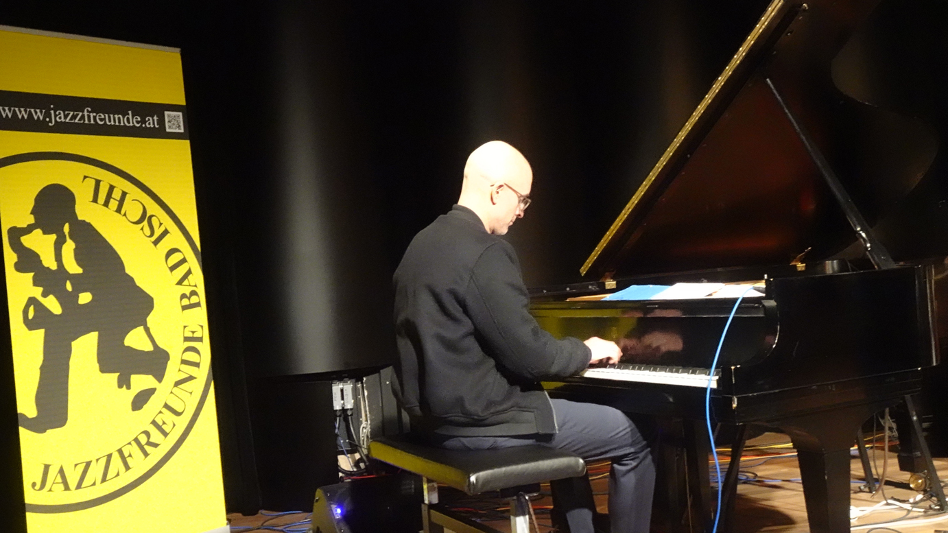 Ungewohntes selbst für die interessierten und offenen Ohren der Jazzfreunde in der Landesmusikschule Bad Goisern: das international erfolgreiche und prominent besetzte Benjamin Lackner Quintet verführte durch die unglaubliche Dichte und Verwobenheit der Musik zu äußerst genauem Zuhören. Keine konventionelle Thema-Solo-Abfolge, keiner musste sich profilieren, sondern es passierte unaufdringliches Ensemblespiel auf höchstem Niveau. Der Trompeter Mathias Eick beginnt mit einer Linie, Saxofonist Maciej Obara ergänzt mit einer Gegenmelodie, Drummer Matthieu Chazarenc setzt gekonnte Akzente. Bassist Harish Raghavan groovt von hinten und der deutsch-amerikanische Pianist und sensibler Klangmaler Benjamin Lackner bettet alles in impressionistisch verdichtete Klänge. In der Zugabe spielte er ein schwebendes intensives Solo.