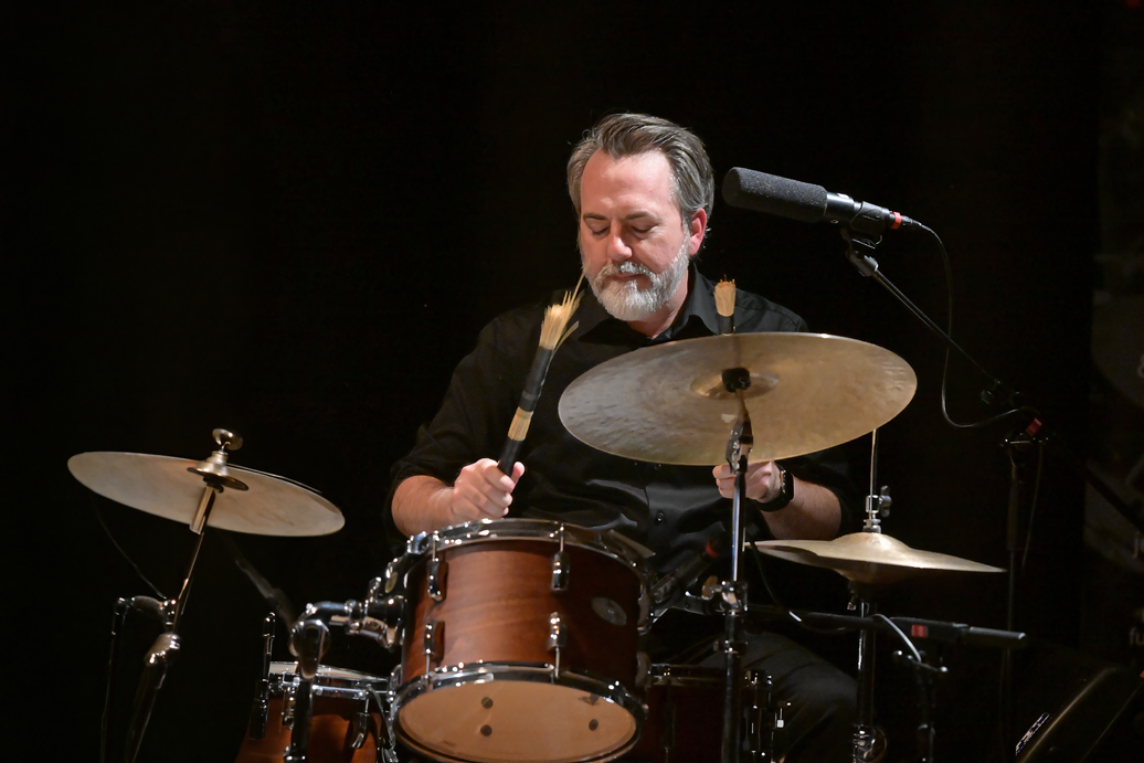 Eine tragende Rolle spielte dabei auch die Rhythmusgruppe. Schlagzeuger Andreas Bye, im besten Sinne ein Vertreter der alten Schule, arbeitete häufig mit sogenannten Mallets – Schlägeln mit runden Filz- oder Wollköpfen – und schuf damit einen besonders weichen, farbenreichen Klangteppich. Der dezente Puls des Trios wurde vom Bassisten Lars Tormod Jenset getragen, der mit wachem Ohr und großer Zurückhaltung den musikalischen Austausch zwischen Eriksen und Sheppard umsichtig stützte.